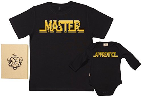 SR - Reward Boxed Dad & Child Reward Set - Grasp & Apprentice Natural Matching Father T-Shirt & Babygrow - Black - XX-Giant & 12-18 Months