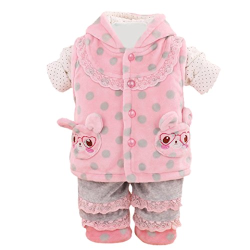 Tangda- three Pcs Ensemble Bébé fille Tenue Shirt Veste à Capuche Pantalon Cartoon Impression Dentelle à Pois Nouveau Zero- 28Mois Rose 12