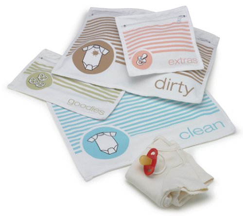 - Set of four cotton pouches that help transform and organize virtually any bag into a diaper bag
