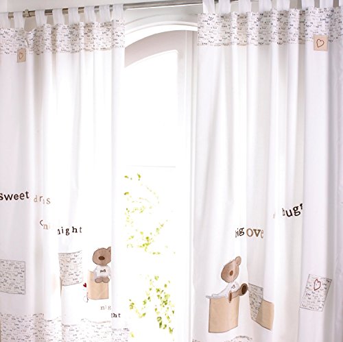 - Easy to hang appliquéd, tab top cotton curtains, lined in cotton